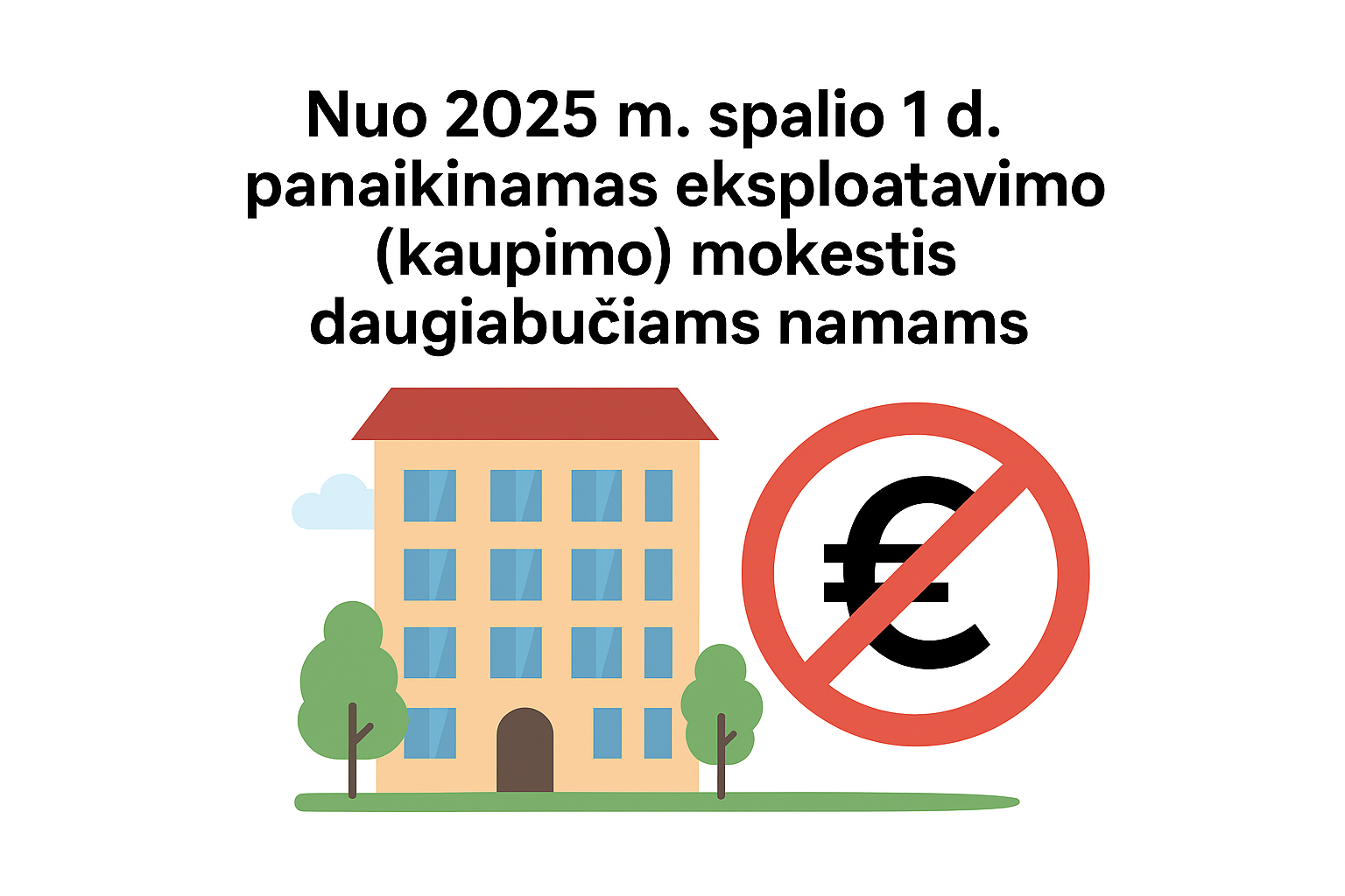 DĖMESIO! Nuo 2025 m. spalio 1 d. panaikinamas eksploatavimo (kaupimo) mokestis daugiabučiams namams